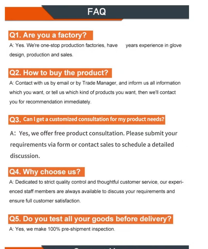 Our journey of excellence begins with meticulous production. As genuine source factories, we ensure both low prices and high quality. We carefully select materials that meet our customers' strict standards of durability, comfort and style. Each product is precisely manufactured in our most advanced manufacturing facilities to ensure the detail of every stitch. Our commitment to quality does not end here - a strict quality control process ensures that every pair of gloves will pass through our strict acceptance standards.