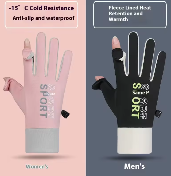 Winter thickened outdoor cycling gloves, windproof and splash-proof elastic open-toe cycling gloves for men and women.